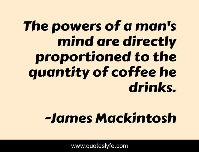 This page presents the quote "The powers of a man's mind are directly proportioned to the quantity of coffee he drinks.". Author of this quote is James Mackintosh. This quote is about intelligence, coffee, humor,.