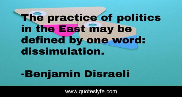 This page presents the quote "The practice of politics in the East may be defined by one word: dissimulation.". Author of this quote is Benjamin Disraeli. This quote is about may, practice, one word,.