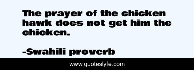 This page presents the quote "The prayer of the chicken hawk does not get him the chicken.". Author of this quote is Swahili proverb. .