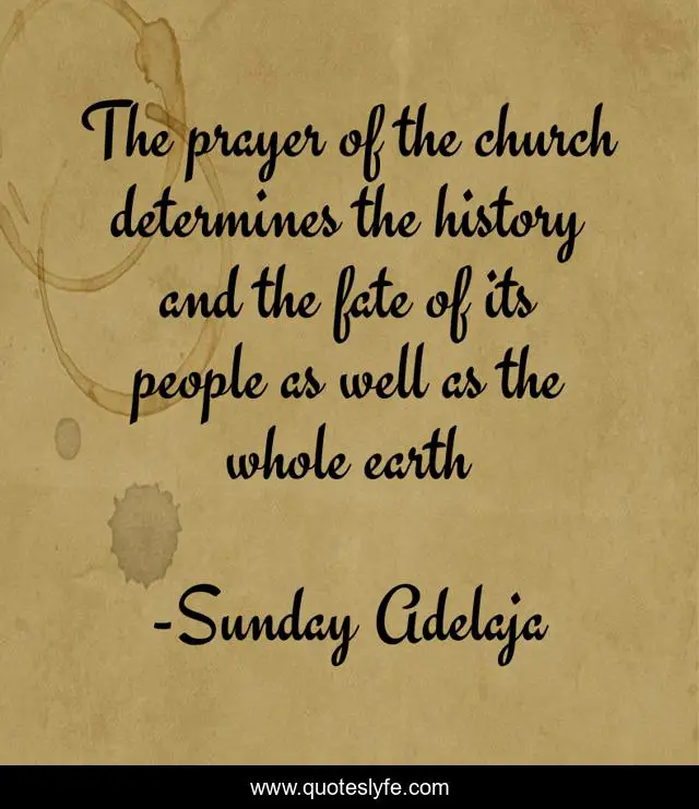 This page presents the quote "The prayer of the church determines the history and the fate of its people as well as the whole earth". Author of this quote is Sunday Adelaja. .