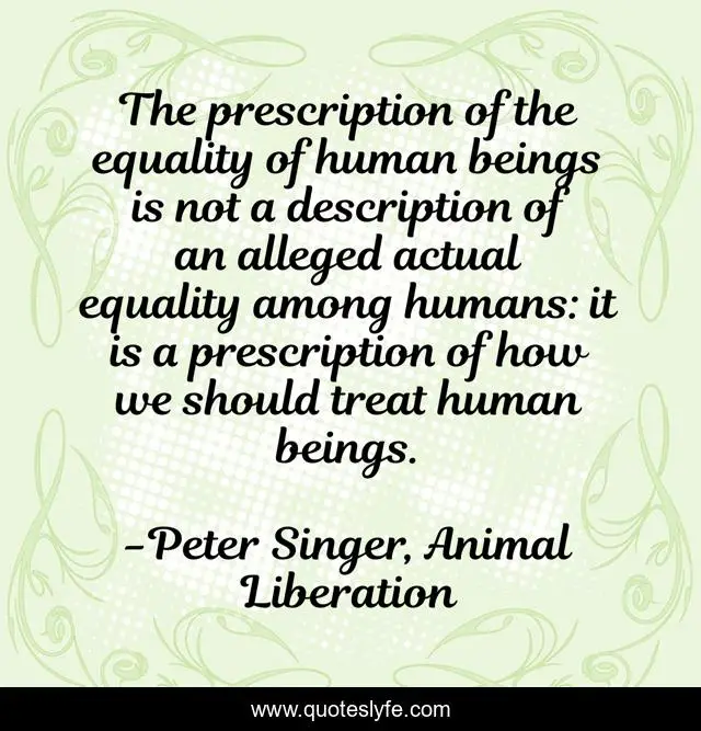 "Peter Singer, Animal Liberation Quotes." Quoteslyfe.com, 2025. Mon. 08 Dec. 2025. <https://www.quoteslyfe.com/quote/The-prescription-of-the-equality-of-human-208432>.