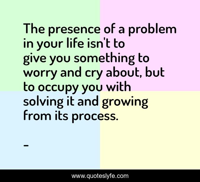 The presence of a problem in your life isn't to give you something to worry and cry about, but to occupy you with solving it and growing from its process.