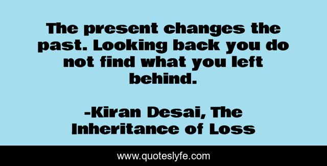 "Kiran Desai, The Inheritance of Loss Quotes." Quoteslyfe.com, 2025. Sat. 06 Dec. 2025. <https://www.quoteslyfe.com/quote/The-present-changes-the-past-Looking-back-59396>.