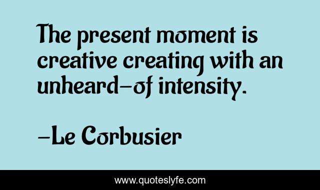 This page presents the quote "The present moment is creative creating with an unheard-of intensity.". Author of this quote is Le Corbusier. .