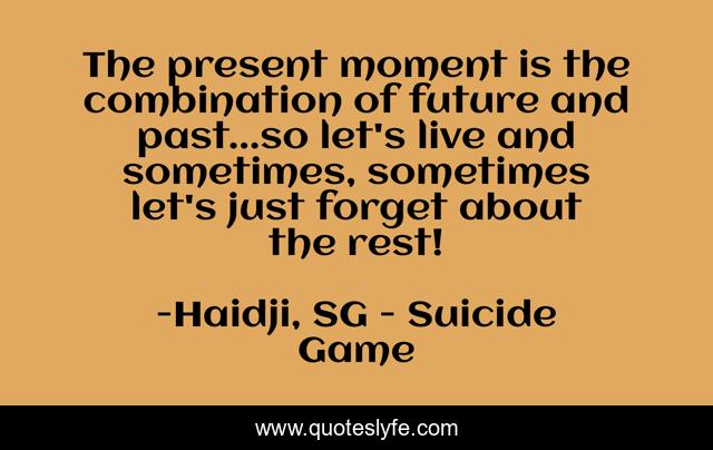 "Haidji, SG - Suicide Game Quotes." Quoteslyfe.com, 2025. Fri. 05 Dec. 2025. <https://www.quoteslyfe.com/quote/The-present-moment-is-the-combination-of-178648>.