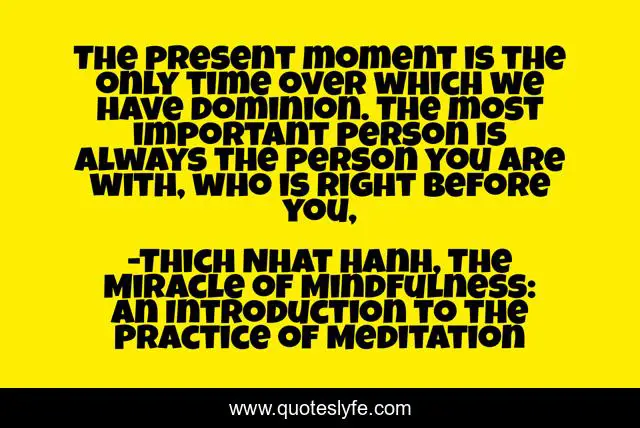This page presents the quote "The present moment is the only time over which we have dominion. The most important person is always the person you are with, who is right before you, ". Author of this quote is Thich Nhat Hanh, The Miracle of Mindfulness: An Introduction to the Practice of Meditation. .