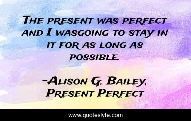 This page presents the quote "The present was perfect and I wasgoing to stay in it for as long as possible.". Author of this quote is Alison G. Bailey, Present Perfect. .