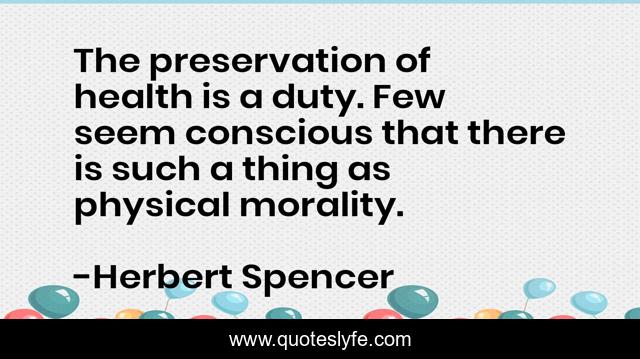 This page presents the quote "The preservation of health is a duty. Few seem conscious that there is such a thing as physical morality.". Author of this quote is Herbert Spencer. This quote is about duty, preservation, morality,.
