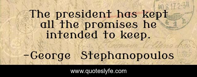 This page presents the quote "The president has kept all the promises he intended to keep.". Author of this quote is George Stephanopoulos. This quote is about political-humor, humor, political,.