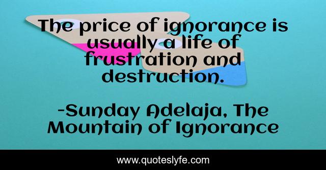 This page presents the quote "The price of ignorance is usually a life of frustration and destruction.". Author of this quote is Sunday Adelaja, The Mountain of Ignorance. This quote is about mountain, life, darkness, power, danger, god, price, people, ignorance,.
