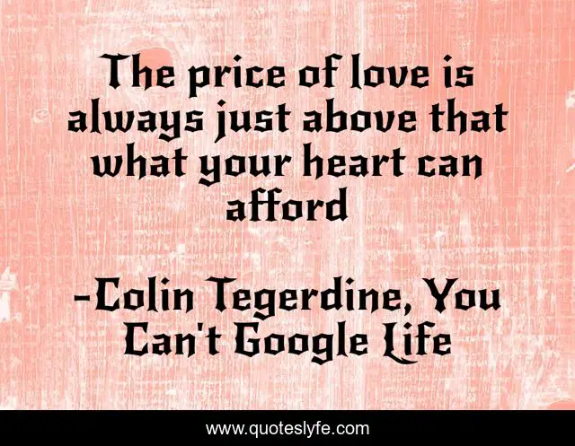 "Colin Tegerdine, You Can't Google Life Quotes." Quoteslyfe.com, 2025. Sat. 06 Dec. 2025. <https://www.quoteslyfe.com/quote/The-price-of-love-is-always-just-18191>.