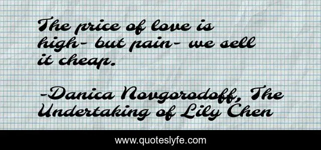 "Danica Novgorodoff, The Undertaking of Lily Chen Quotes." Quoteslyfe.com, 2025. Sat. 06 Dec. 2025. <https://www.quoteslyfe.com/quote/The-price-of-love-is-high-but-75928>.