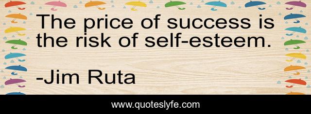 This page presents the quote "The price of success is the risk of self-esteem.". Author of this quote is Jim Ruta. This quote is about risk, success, wisdom,.