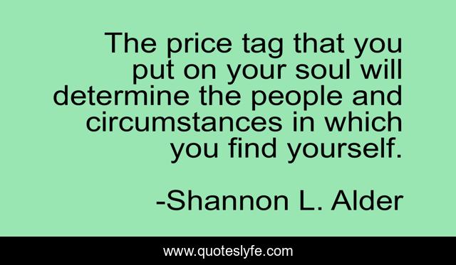 This page presents the quote "The price tag that you put on your soul will determine the people and circumstances in which you find yourself.". Author of this quote is Shannon L. Alder. This quote is about self-acceptance, self-worth,.