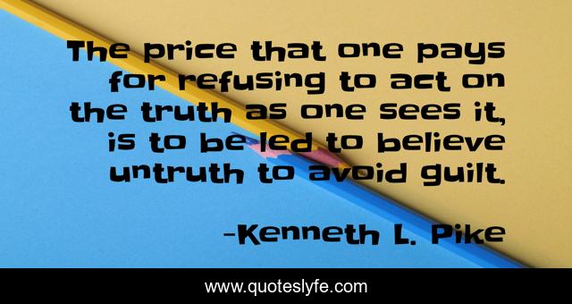 This page presents the quote "The price that one pays for refusing to act on the truth as one sees it, is to be led to believe untruth to avoid guilt.". Author of this quote is Kenneth L. Pike. This quote is about price, believe, guilt,.