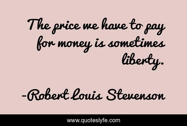 This page presents the quote "The price we have to pay for money is sometimes liberty.". Author of this quote is Robert Louis Stevenson. This quote is about price, sometimes, liberty,.