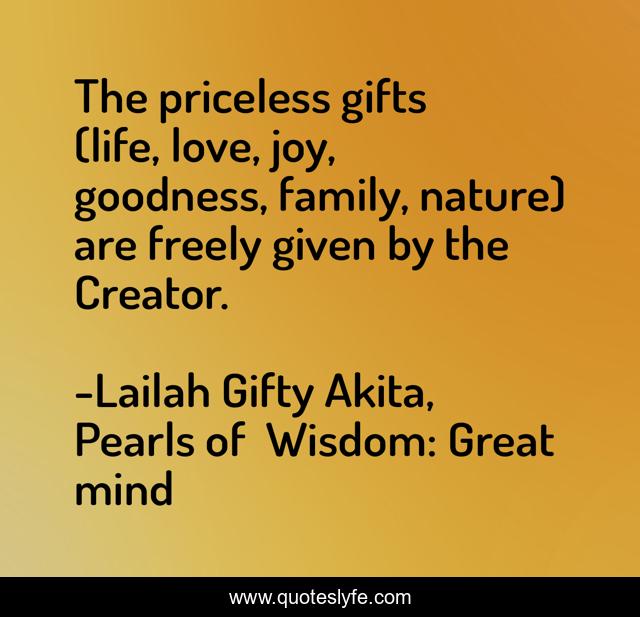 "Lailah Gifty Akita, Pearls of Wisdom: Great mind Quotes." Quoteslyfe.com, 2025. Tue. 09 Dec. 2025. <https://www.quoteslyfe.com/quote/The-priceless-gifts-life-love-joy-goodness-86484>.