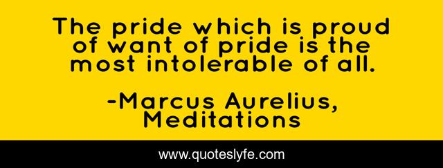 This page presents the quote "The pride which is proud of want of pride is the most intolerable of all.". Author of this quote is Marcus Aurelius, Meditations. This quote is about pride, humility,.
