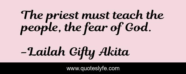 This page presents the quote "The priest must teach the people, the fear of God.". Author of this quote is Lailah Gifty Akita. This quote is about christian, pope, fear-of-god, preachers, priest, pastors, inspirational, enthusiasm,.