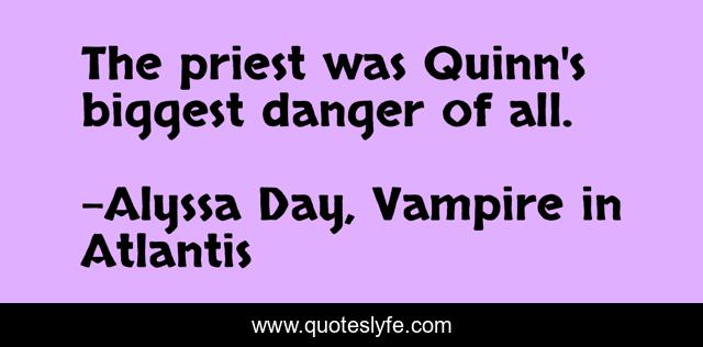 This page presents the quote "The priest was Quinn's biggest danger of all.". Author of this quote is Alyssa Day, Vampire in Atlantis. This quote is about alyssa, atlantis, vampire, day, in,.