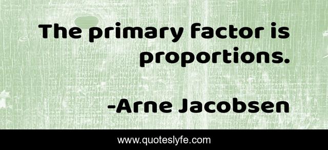 This page presents the quote "The primary factor is proportions.". Author of this quote is Arne Jacobsen. This quote is about proportions, primary, factor,.