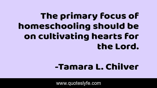 This page presents the quote "The primary focus of homeschooling should be on cultivating hearts for the Lord.". Author of this quote is Tamara L. Chilver. This quote is about homekeeper, christian, homeschool, homeschool-authors, homeschool-mom-encouragement, inspirational, grace-filled-homeschool, enthusiasm, the-battle-is-real,.