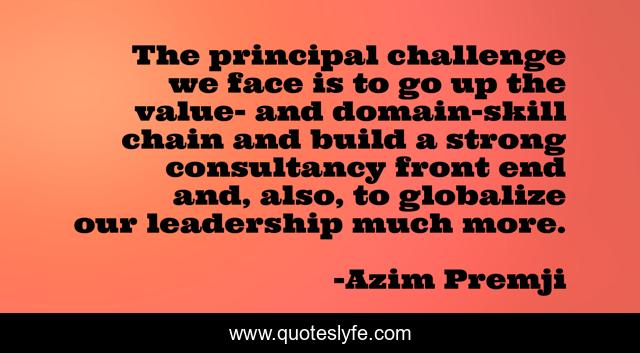 This page presents the quote "The principal challenge we face is to go up the value- and domain-skill chain and build a strong consultancy front end and, also, to globalize our leadership much more.". Author of this quote is Azim Premji. This quote is about challenge, strong, value,.