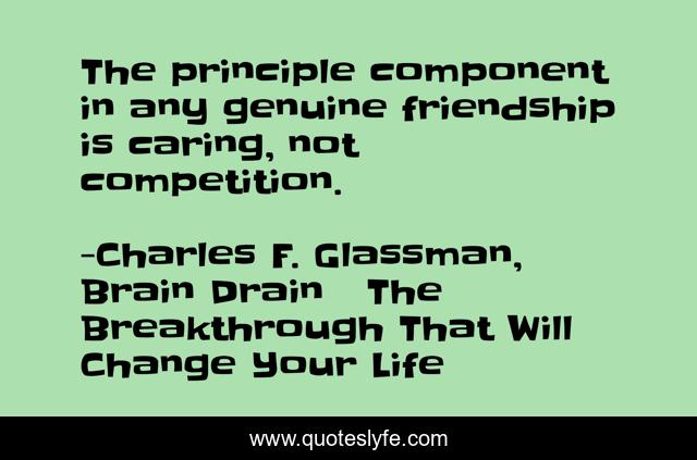 This page presents the quote "The principle component in any genuine friendship is caring, not competition.". Author of this quote is Charles F. Glassman, Brain Drain The Breakthrough That Will Change Your Life. .