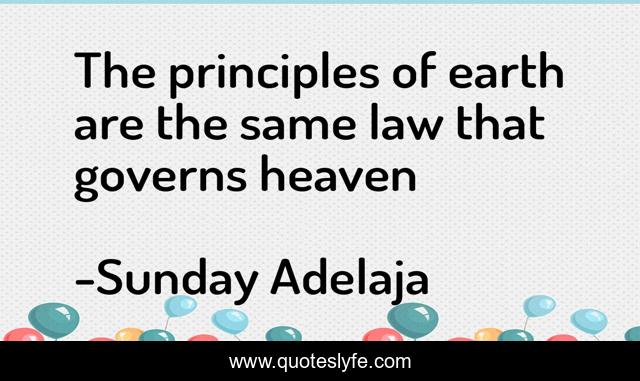 This page presents the quote "The principles of earth are the same law that governs heaven". Author of this quote is Sunday Adelaja. This quote is about earth, heaven, principle, law, governs,.
