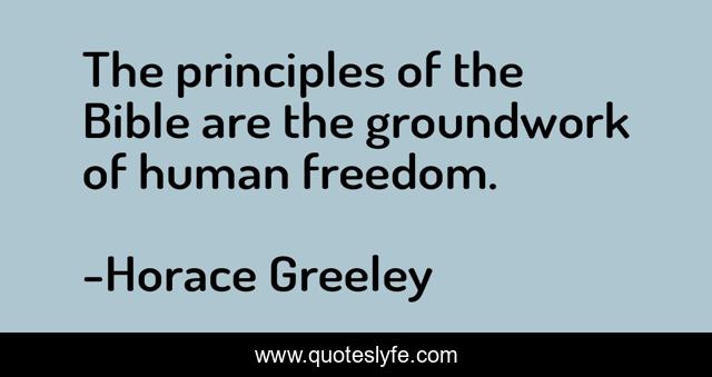 This page presents the quote "The principles of the Bible are the groundwork of human freedom.". Author of this quote is Horace Greeley. This quote is about freedom, bible-principles,.