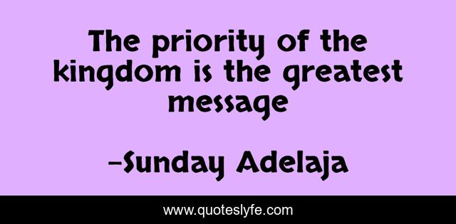 This page presents the quote "The priority of the kingdom is the greatest message". Author of this quote is Sunday Adelaja. This quote is about kingdom, priority, message, greatest,.
