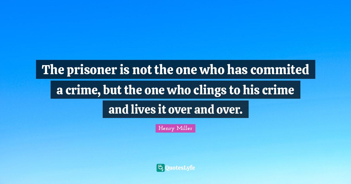 This page presents the quote "The prisoner is not the one who has commited a crime, but the one who clings to his crime and lives it over and over.". Author of this quote is Henry Miller. This quote is about literature, crime, prisoner, prison life,.