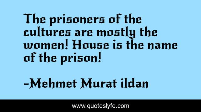 This page presents the quote "The prisoners of the cultures are mostly the women! House is the name of the prison!". Author of this quote is Mehmet Murat ildan. This quote is about woman, murat-ildan, house, prisoners, prisoner, women,.