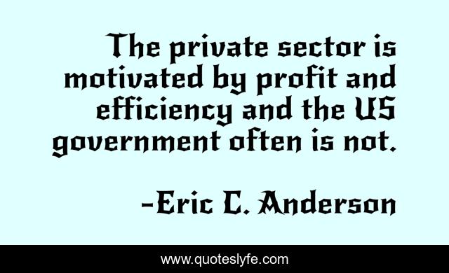 This page presents the quote "The private sector is motivated by profit and efficiency and the US government often is not.". Author of this quote is Eric C. Anderson. This quote is about profit, efficiency,.