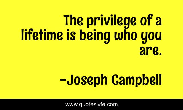 This page presents the quote "The privilege of a lifetime is being who you are.". Author of this quote is Joseph Campbell. This quote is about privilege, being,.