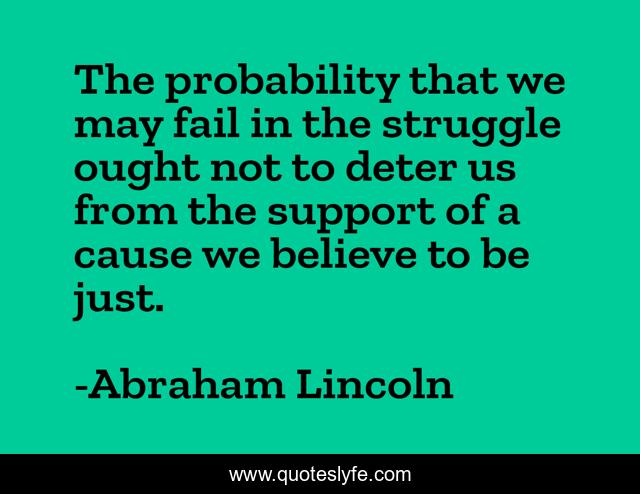This page presents the quote "The probability that we may fail in the struggle ought not to deter us from the support of a cause we believe to be just.". Author of this quote is Abraham Lincoln. This quote is about failures, mistakes,.