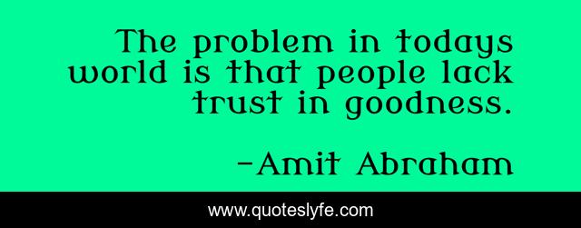 This page presents the quote "The problem in todays world is that people lack trust in goodness.". Author of this quote is Amit Abraham. This quote is about faith, good-and-evil, trustworthiness,.