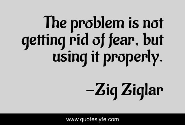 This page presents the quote "The problem is not getting rid of fear, but using it properly.". Author of this quote is Zig Ziglar. This quote is about using, problem, rid,.