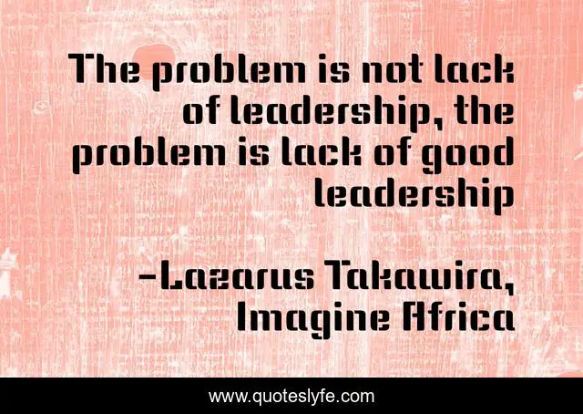 "Lazarus Takawira, Imagine Africa Quotes." Quoteslyfe.com, 2025. Fri. 05 Dec. 2025. <https://www.quoteslyfe.com/quote/The-problem-is-not-lack-of-leadership-64521>.