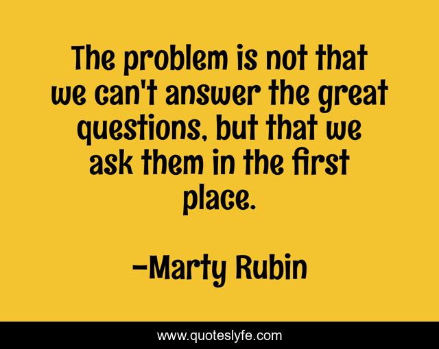 This page presents the quote "The problem is not that we can't answer the great questions, but that we ask them in the first place.". Author of this quote is Marty Rubin. This quote is about philosophy, problems, answers, questions,.