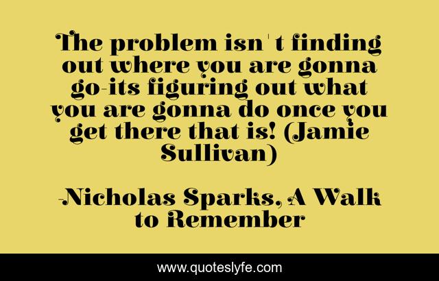 This page presents the quote "The problem isn't finding out where you are gonna go-its figuring out what you are gonna do once you get there that is! (Jamie Sullivan)". Author of this quote is Nicholas Sparks, A Walk to Remember. .