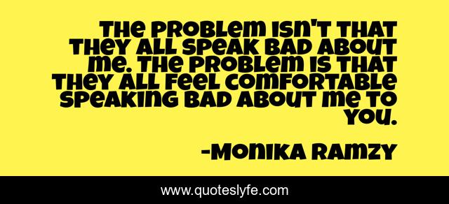 This page presents the quote "The problem isn't that they all speak bad about me. The problem is that they all feel comfortable speaking bad about me to you.". Author of this quote is Monika Ramzy. This quote is about lessons, life, pain, truth, hurt, inspirational, gossip, enthusiasm,.