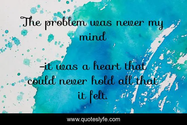 "it was a heart that could never hold all that it felt. Quotes." Quoteslyfe.com, 2025. Sat. 06 Dec. 2025. <https://www.quoteslyfe.com/quote/The-problem-was-never-my-mind-87121>.