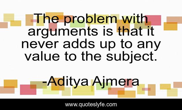This page presents the quote "The problem with arguments is that it never adds up to any value to the subject.". Author of this quote is Aditya Ajmera. This quote is about meaninglessness, arguments, value,.