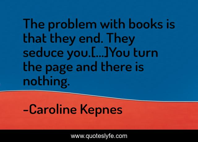 This page presents the quote "The problem with books is that they end. They seduce you.[…]You turn the page and there is nothing.". Author of this quote is Caroline Kepnes. This quote is about end, kapnes, books, problem, caroline, page,.