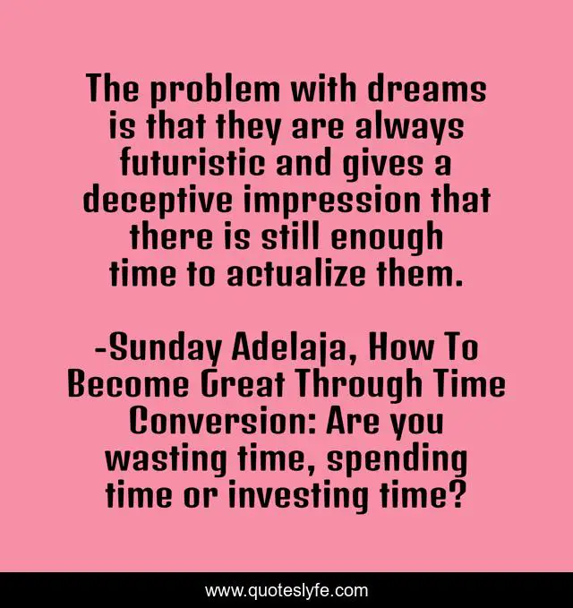 "Sunday Adelaja, How To Become Great Through Time Conversion: Are you wasting time, spending time or investing time? Quotes." Quoteslyfe.com, 2025. Sat. 06 Dec. 2025. <https://www.quoteslyfe.com/quote/The-problem-with-dreams-is-that-they-39190>.