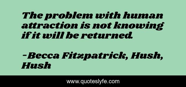 This page presents the quote "The problem with human attraction is not knowing if it will be returned.". Author of this quote is Becca Fitzpatrick, Hush, Hush. This quote is about attraction, being-loved, insecurity,.