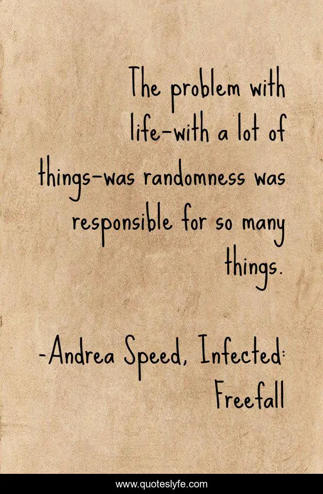 This page presents the quote "The problem with life—with a lot of things—was randomness was responsible for so many things.". Author of this quote is Andrea Speed, Infected: Freefall. This quote is about dylan, sad,.