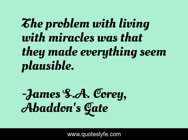 This page presents the quote "The problem with living with miracles was that they made everything seem plausible.". Author of this quote is James S.A. Corey, Abaddon's Gate. .
