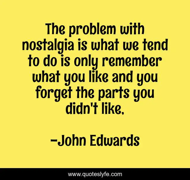 "John Edwards Quotes." Quoteslyfe.com, 2025. Fri. 05 Dec. 2025. <https://www.quoteslyfe.com/quote/The-problem-with-nostalgia-is-what-we-230600>.